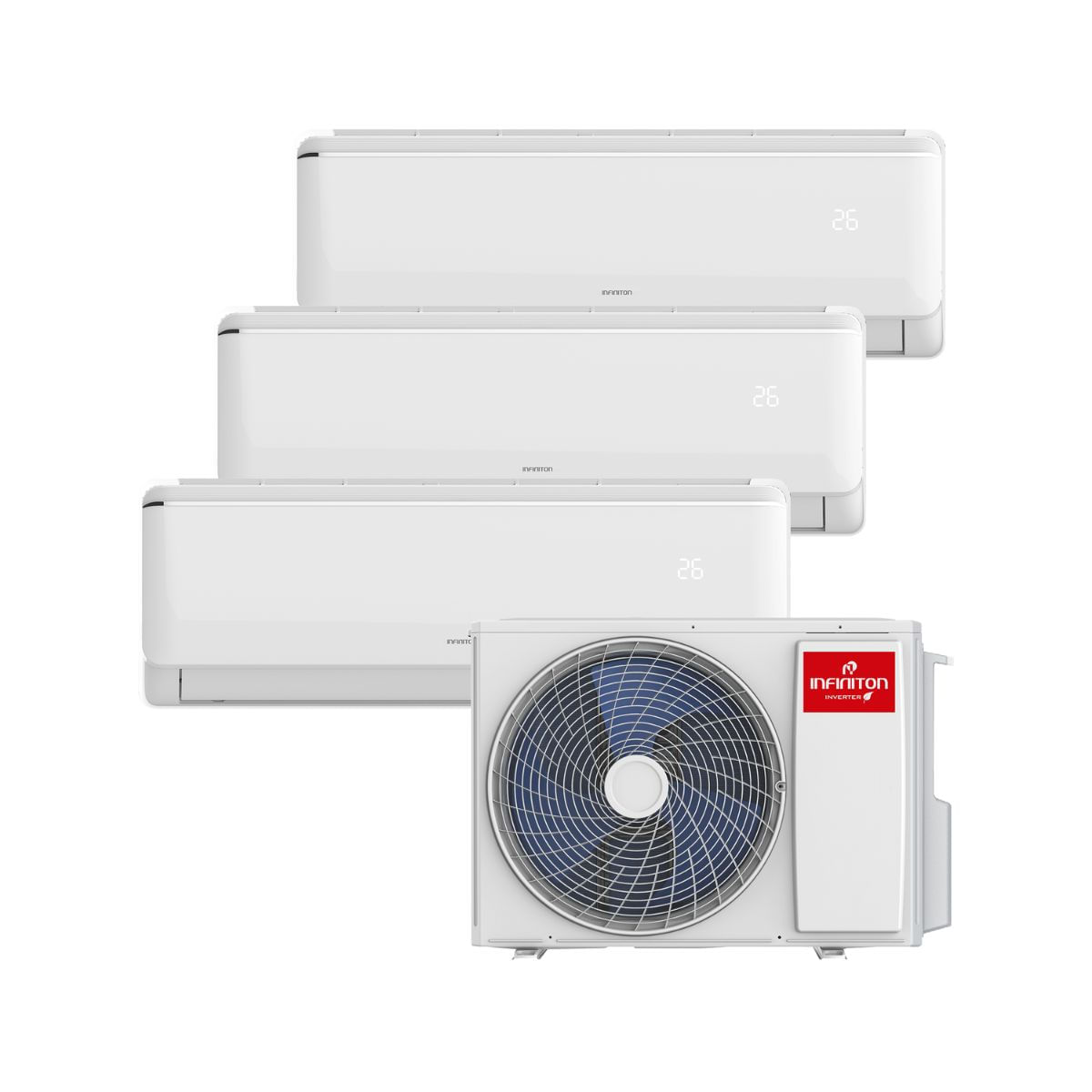 Este conjunto Multisplit 3x1 modelo MPTMF120909A2 está formado por 3 unidades interiores y 1 exterior de la reconocida marca Infiniton. Es una combinación perfecta para climatizar estancias de 30 m2 sin esfuerzo alguno de forma eficiente y confortable contando con un gran ahorro energético y de espacio ya que cuenta con una sola unidad exterior.