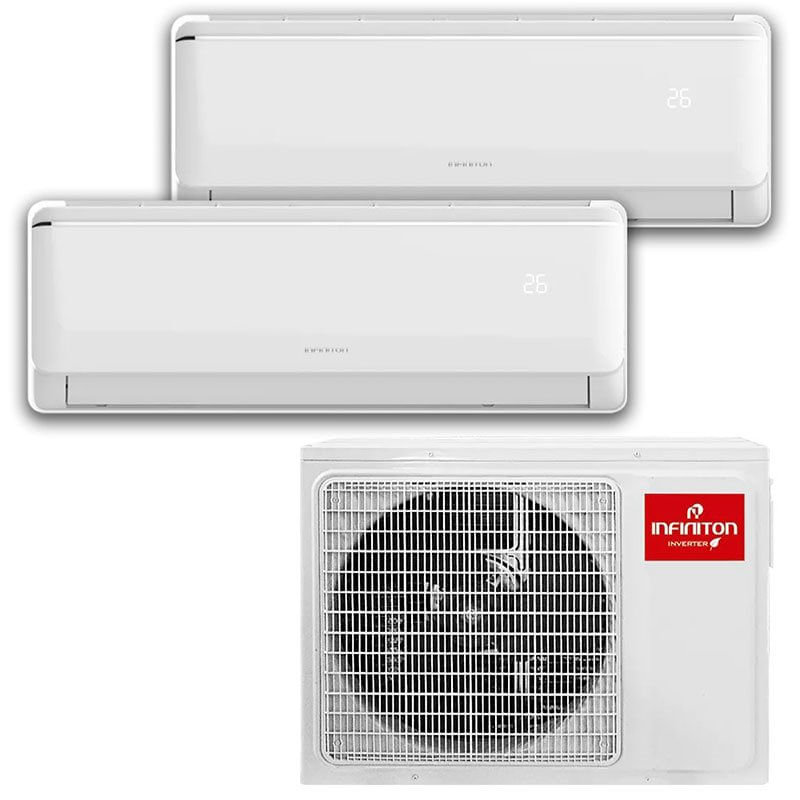 El set de 2 aires acondicionados Split modelo Multi-3230 de la marca Infiniton viene con 2 unidades interiores y 1 unidad exterior. Podrás darles servicio a 2 estancias distintas desde la misma máquina. Solo tendrás que contar con habitaciones contiguas y que haya una distancia de estas a la máquina de no más de 8 metros. Gracias a su filtro de alta densidad podrás reducir las partículas como pueden ser virus, bacterias que están en el aire de nuestro día a día. Cuenta con modo silencioso y compresor Inverter. Son ideales para estancias de entre 30m² y 70m². Y cuenta con auto-limpieza que permite que el aparato se esterilice a alta temperatura mediante un evaporador.