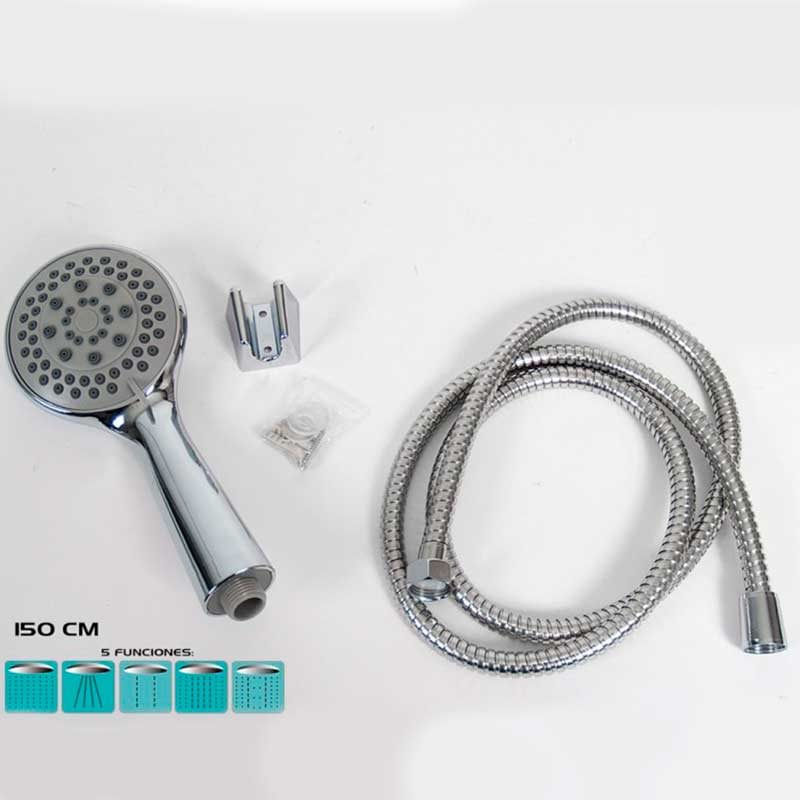 Si estás pensando en cambiar tu alcachofa de ducha esta es ideal. Cuenta con 5 funciones de chorro que podrás ir variando según tus necesidades. Está fabricada en acero y viene con manguera conectora de grifo (150 cm), alcachofa (cabezal), soporte para pared y los herrajes necesarios para anclar el soporte. Su instalación es muy sencilla y podrás llevarla a cabo tú mismo.