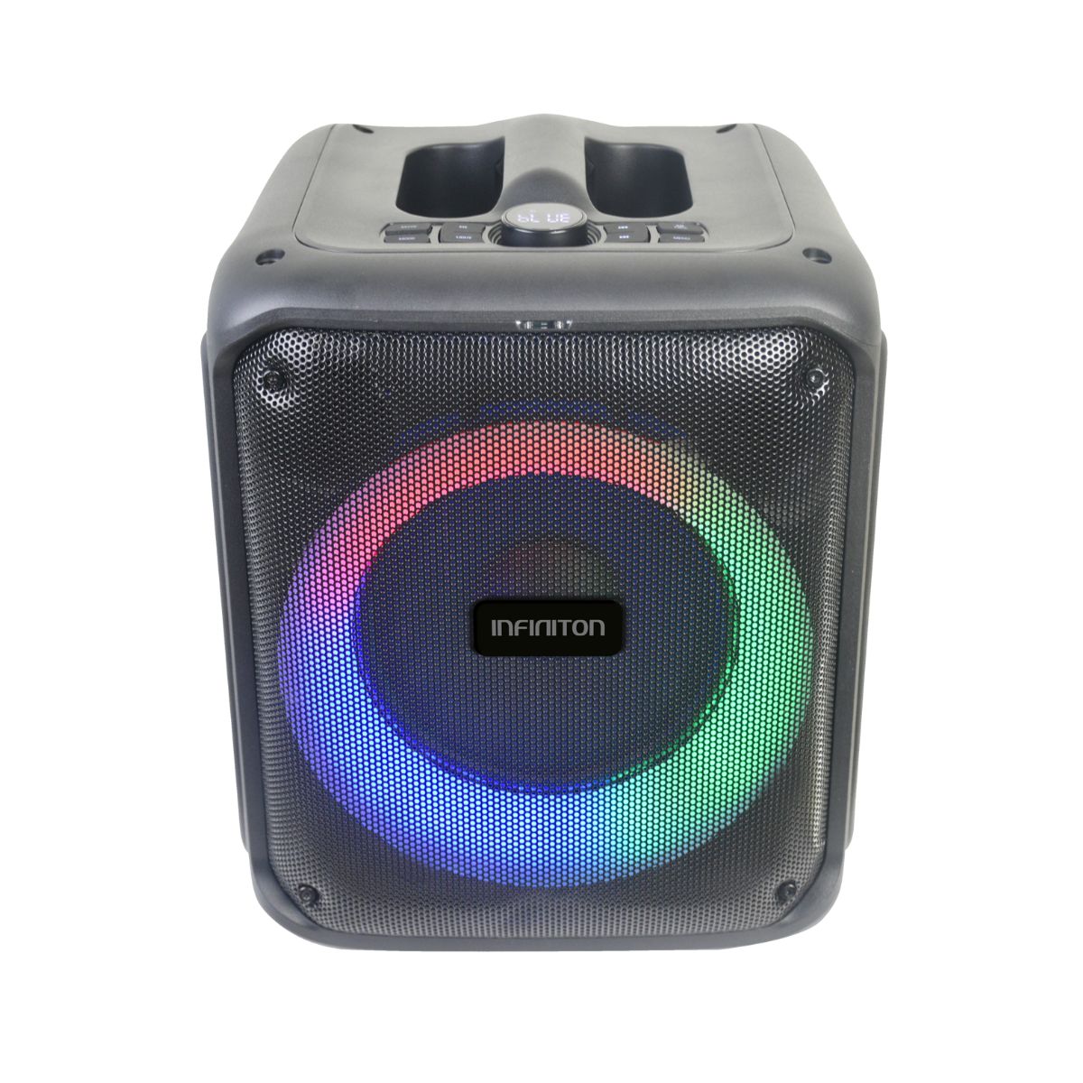 Presentamos el altavoz portátil Party EQ07 de Infiniton, diseñado para llevar tu experiencia musical al siguiente nivel. Equipado con un potente subwoofer de 8” y un tweeter de 2”, este altavoz ofrece una potencia máxima de 70W y una potencia RMS de 40W, proporcionando un sonido claro y profundo que hará vibrar cualquier fiesta. Su magneto de 100 mm garantiza una reproducción de sonido precisa y de alta calidad.