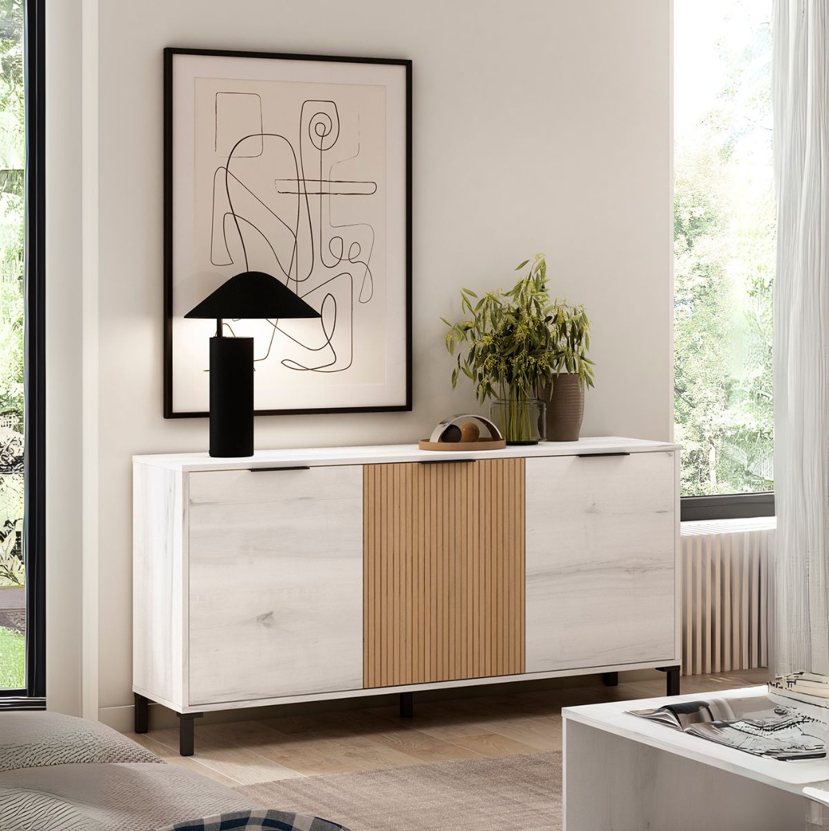 Cuenta con tiradores elegantes y patas elevadas para protegerlos de la humedad y de la suciedad. Tiene un estilo elegante de gran contraste que combinará a la perfección con tu decoración. Hazte con tu aparador Tokio y haz de tu hogar uno mucho más acogedor.