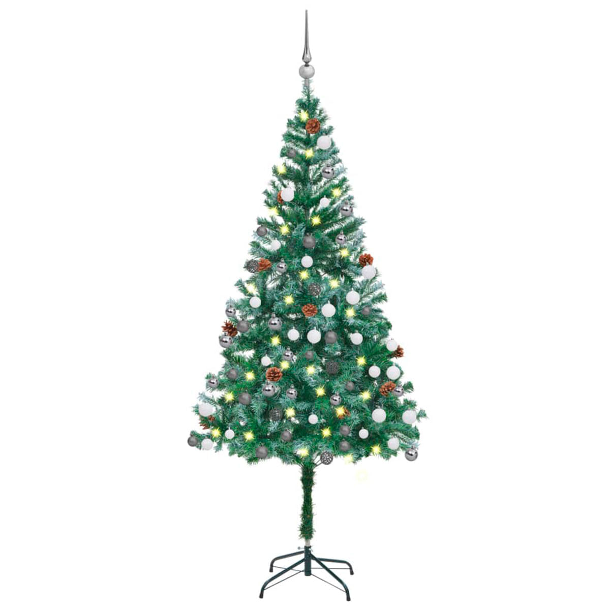 Este estupendo árbol de Navidad está hecho con acero, y PVC, materiales muy resistentes y duraderos. Cuenta con 150 luces LED de bajo consumo, con una potencia de 5W y un largo de la tira de luz LED de 15m. Para darle un toque aún más navideño, cuenta con varias bolas de colores, decorado con piñas y las 950 puntas decoradas con nieve blanca. En lugar de tener estrella, tiene un pincho de pico muy decorativo. Además, gracias a su diseño compacto, te permitirá guardarlo fácilmente y utilizarlo otros años. Además, dispone de un práctico pincho en el poste central para que puedas instalarlo y estabilizarlo en una posición adecuada al suelo y así poder iluminar toda la zona con facilidad. No te preocupes por su instalación ya que es muy sencilla e incluye todo lo que necesitas. ¡Cuenta con la mejor decoración esta Navidad a un precio de chollo! Solo en Embargosalobestia.com