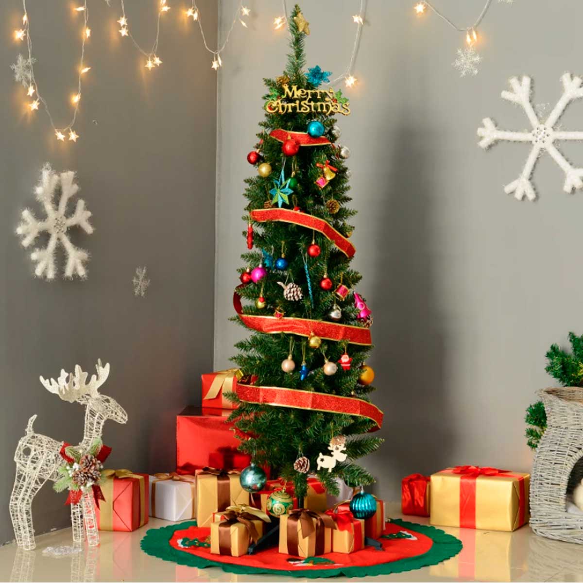 ¿Tienes un salón o comedor pequeño, pero te encanta la Navidad y decorarlo todo? Este estupendo árbol de Navidad de Homcom es perfecto gracias a su tamaño, tiene una altura de 150 cm, pero un diámetro de Ø46 cm, haciéndolo perfecto para estos espacios. Está fabricado con una base metálica desmontable con pies antideslizantes para mayor seguridad; y ramas de PVC. Cuenta con 294 ramas mulliditas para darle ese aspecto frondoso. Es muy fácil de montar y desmontar, por lo que te resultará muy sencillo guardar cuando acabe la época navideña. ¡Disfruta de un buen árbol navideño en casa a un precio de chollo! Consíguelo ahora en Embargosalobestia.com