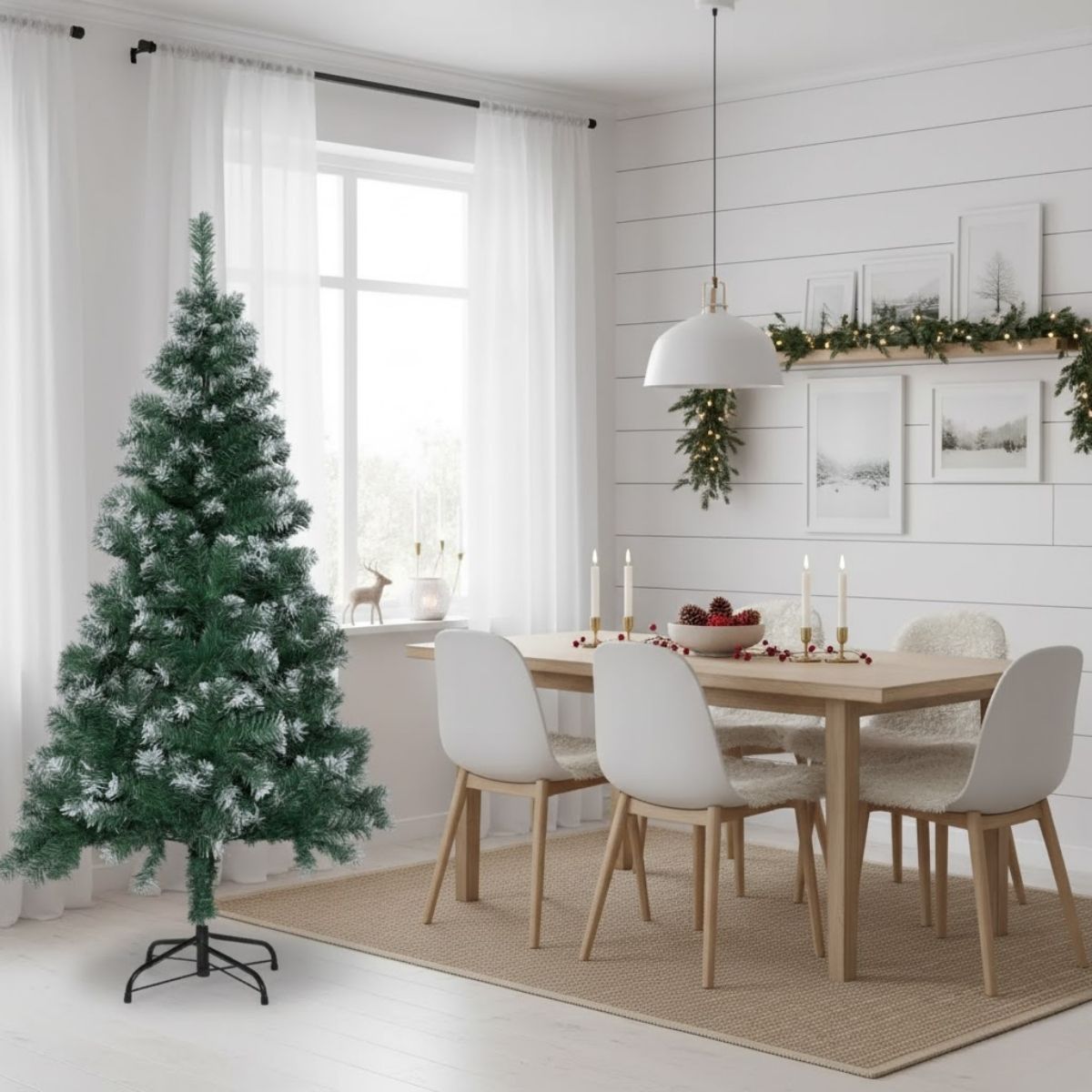 El árbol de Navidad nevado Axel, con 450 ramas y 150 cm de altura, es una propuesta ideal para quienes desean una decoración navideña con estilo y realismo. Su diseño reproduce con gran detalle la apariencia de un abeto natural cubierto de nieve, aportando un toque invernal encantador que transforma cualquier espacio en un ambiente cálido y festivo. Con sus 450 ramas, el árbol Axel ofrece la densidad perfecta para acomodar una variedad de adornos, desde luces y esferas hasta cintas y decoraciones personalizadas. Cada rama está cuidadosamente distribuida para lograr un equilibrio visual armonioso y proporcionar suficiente espacio para que la decoración destaque sin que se vea abarrotada. La textura de las puntas nevadas simula la frescura de un árbol recién caído de nieve, creando una sensación de naturaleza que complementa la estética navideña.