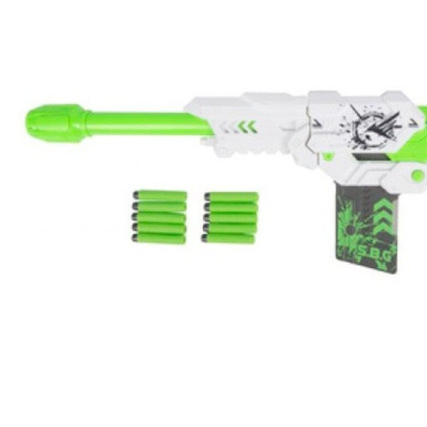 Trabajar la puntería es Juego de habilidad que requiere de concentración y de muchísima precisión para hacer blanco en la diana que te marques o al jugar con tus amigos e intentar abatirlos. Favorece la concentración física y mental. La pistola es de gran tamaño, está fabricada en plástico blanco y verde y cuenta con 10 balas de munición. Las balas están fabricadas en gomaespuma verde. De modo que tendrás hasta 10 oportunidades para ajustar tu puntería y acertar el blanco que elijas. Los fabricantes no recomiendan este juguete para niños menores de 3 años ya que contiene piezas pequeñas.