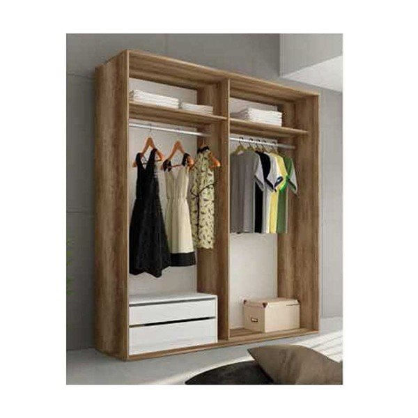 Increíble armario Chellen en color cañón de gran tamaño, idóneo para una habitación de matrimonio. Tener todas las prendas colocadas y ordenadas de forma que podamos acceder a ellas con rapidez es esencial. Ya no tendrás que preguntarte dónde dejaste tu camisa favorita. Lo tendrás todo bien ordenado en este armario de dos puertas correderas que incluye además altillo. Si le añades una cajonera puedes hacerlo mucho más completo.