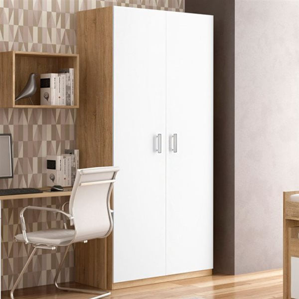 El armario Champion es perfecto para una habitación juvenil y muy combinable con cualquier tipo de decoración. Combina el color cambria de su estructura con el blanco de sus dos puertas. Interiormente se distribuye en dos estantes inferiores para la colocación de mantas, cajas o artículos de textil que ocupen mucho espacio; y también de una barra cromada para colgar todo tipo de prendas. Es de gran capacidad y cuenta con tiradores cromados. Este armario en su conjunto está fabricado en melanina de alta calidad, lo que avala su resistencia y durabilidad y además de que se trata de un producto de fabricación nacional por lo que la garantía del mismo está 100% asegurada. Es de fácil y rápido montaje.