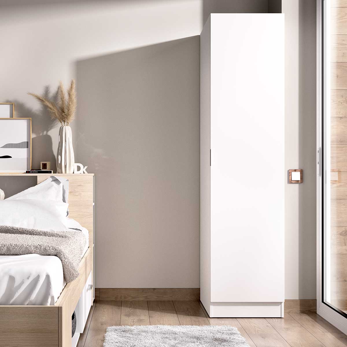 Tanto si buscas un armario de medidas ajustadas para dormitorios pequeños o para combinarlo con otros armarios y montarte una auténtica composición, este armario Essen es sin duda una gran opción. Fabricado en melamina de buena calidad y con un diseño minimalista, el armario Essen se postula como uno de los modelos más populares de los hogares españoles. Está compuesto por 1 puerta abatible y un tirador discreto situado en el lateral. Si nos adentramos en su interior, vemos que el espacio no podría estar mejor aprovechado, pues en la parte superior encontramos 1 barra para colgar y, bajo este, 3 prácticos estantes donde podrás colocar ropa doblada y otras prendas y accesorios. ¡Podrás cambiar su organización si así lo deseas! Así es, este armario es customizable, por lo que podrás organizarlo de la manera que mejor se adapte a ti. Gracias a su línea moderna y a su bonito color, este armario combinará sin problema con el resto de mobiliario y le dará un soplo de aire fresco a tu dormitorio. Disfruta de todas sus ventajas a un precio de chollo en Embargosalobestia.
