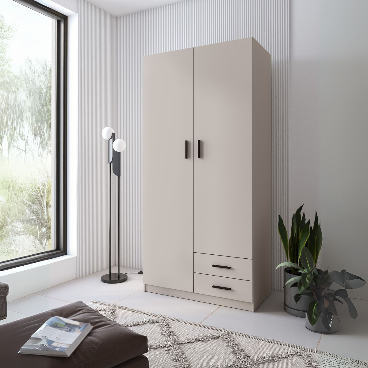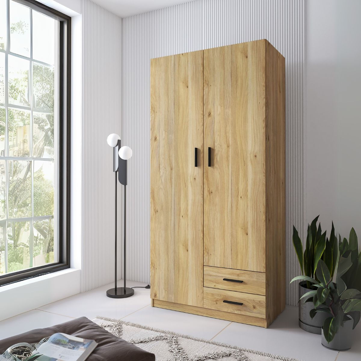 El armario New Aura es la opción perfecta si buscas un mueble con gran capacidad de almacenamiento y un diseño renovado y actual. Ideal tanto para el dormitorio de tus hijos como para tu vestidor, este armario cuenta con dos puertas, una barra interior para colgar ropa y dos prácticos cajones inferiores, perfectos para organizar tus prendas y accesorios.