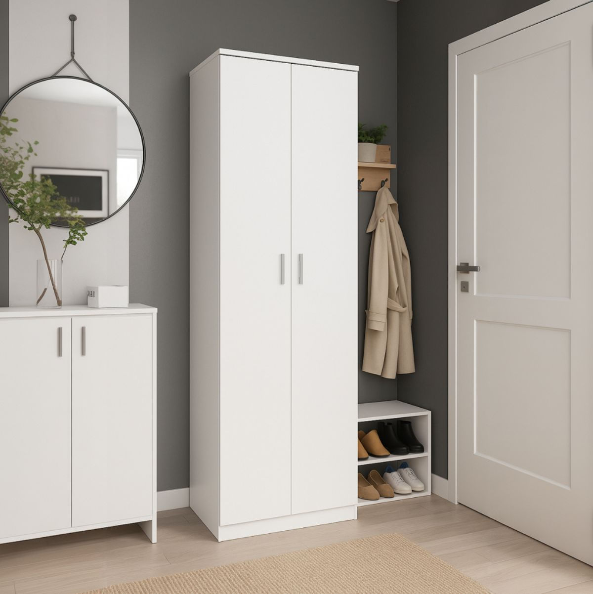 Organiza el calzado de toda la familia dentro de este armario zapatero modelo Sena y tenlos siempre a mano y bien ordenados. Ocupa muy poco espacio, pero cuenta con una gran capacidad de almacenaje gracias a los 6 estantes interiores que incluye para que puedas distribuir numerosos pares de zapatos a lo largo de sus 170 cm de alto. Este mueble auxiliar se cierra con dos puertas frontales con tiradores y permite utilizarse además como armario despensero o para guardar los productos de limpieza. Está fabricado en melamina de alta calidad, muy resistente al uso diario y con una línea minimalista que le aporta ese carácter combinable. Si en casa sois muchos o si cuentas con numerosos pares de zapatos, no lo dudes, hazte con tu armario zapatero Sena y disfruta de un mayor orden en tu hogar.