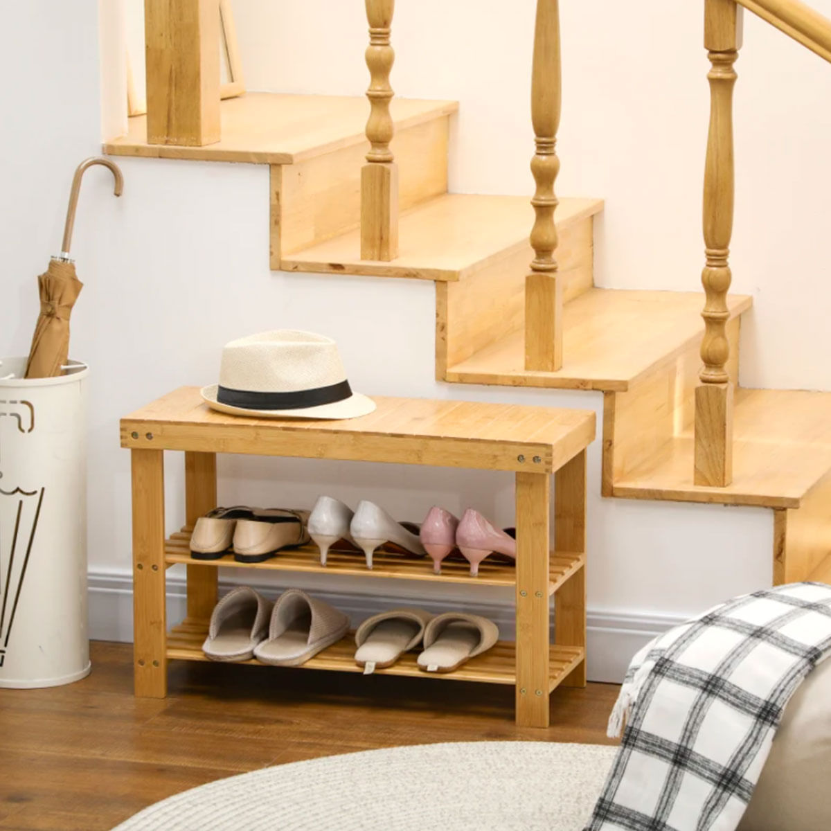 Si tienes una entrada amplia o espacio en la parte baja de la cama, este banco zapatero es perfecto para añadir espacio para tus zapatos. Está hecho con madera de bambú, muy resistente y duradero, con un estilo natural elegante que combinará con cualquier decoración. Es capaz de soportar hasta 136kg de peso en total. Está compuesto por 3 niveles: un asiento para que puedas ponerte los zapatos cómodamente, y 2 estantes con capacidad para 6 pares de zapatos en total. Las patas están ligeramente elevadas para proteger tanto el mueble como tus zapatos de la humedad y de la suciedad. Los estantes están hechos con listones, de manera que proporciona una buena ventilación. Es un mueble muy polivalente, ya que lo puedes usar en la entrada o el dormitorio para zapatos, pero también como decoración para tus plantas. ¡Quedará genial lo pongas donde lo pongas! ¿Lo mejor? ¡Un precio de chollo!