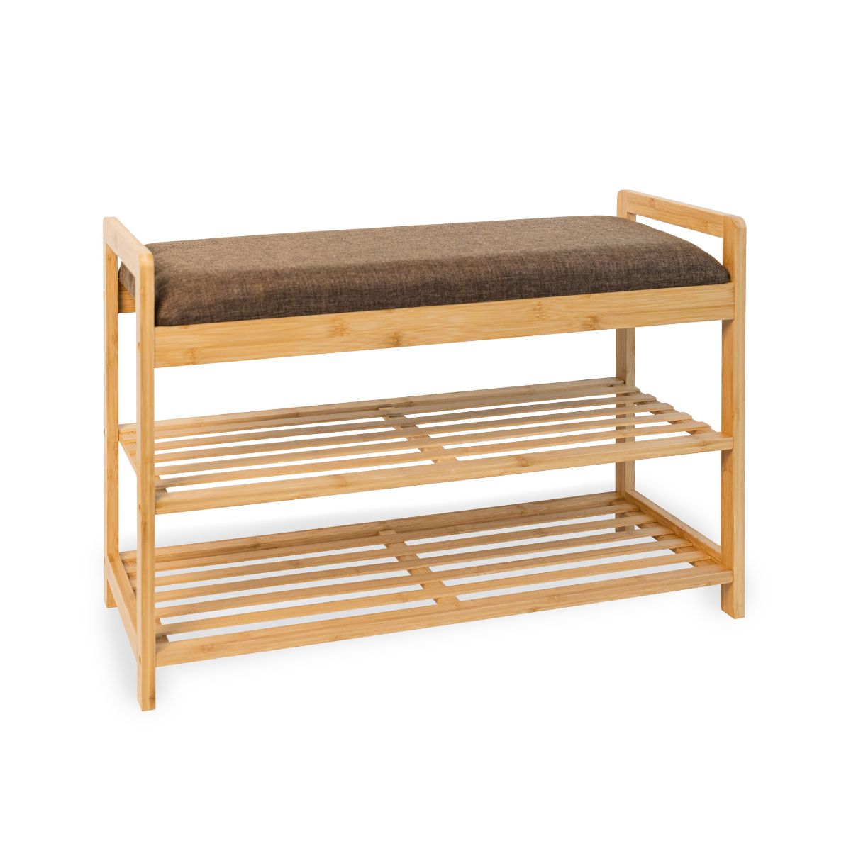 Descubre el encantador banco zapatero ideal para mantener en orden tu calzado y el de tu familia. Con el MOA de Vinthera podrás tener a mano tus zapatos en todo momento. Perfecto para situarlo en cualquier lugar de tu hogar, es super práctico para situarlo en la entrada junto a la puerta. Su asiento acolchado es de lo más cómodo y práctico, podrás sentarte y ajustarte tu calzado con la mayor comodidad posible. Fabricado en bambú ultra resistente, este banco zapatero es capaz de soportar hasta 70kg de peso en su asiento y 5kg en cada una de sus baldas.