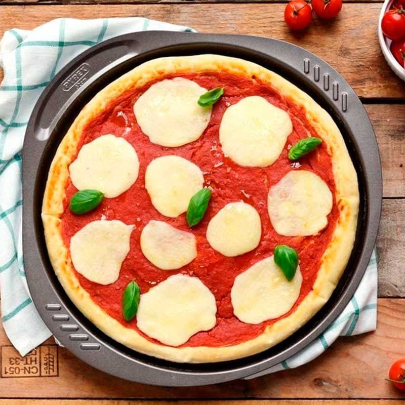 ¿La pizza perfecta? Ahora podrás cocinarla en casa con la bandeja especial para pizzas modelo Asimetría de la marca Pyrex. Se caracteriza por contar con fondo rugoso y antiadherente, para que puedas retirarla fácilmente cuando esté lista. Está fabricada en acero carbonatado que permite una cocción uniforme y homogénea. Podrás manejarla con total comodidad gracias a las asas que vienen en el borde. Es apta para horno, congelador, frigorífico y soporta temperaturas máximas de hasta 250ºC. Además, también es apta para lavavajillas.