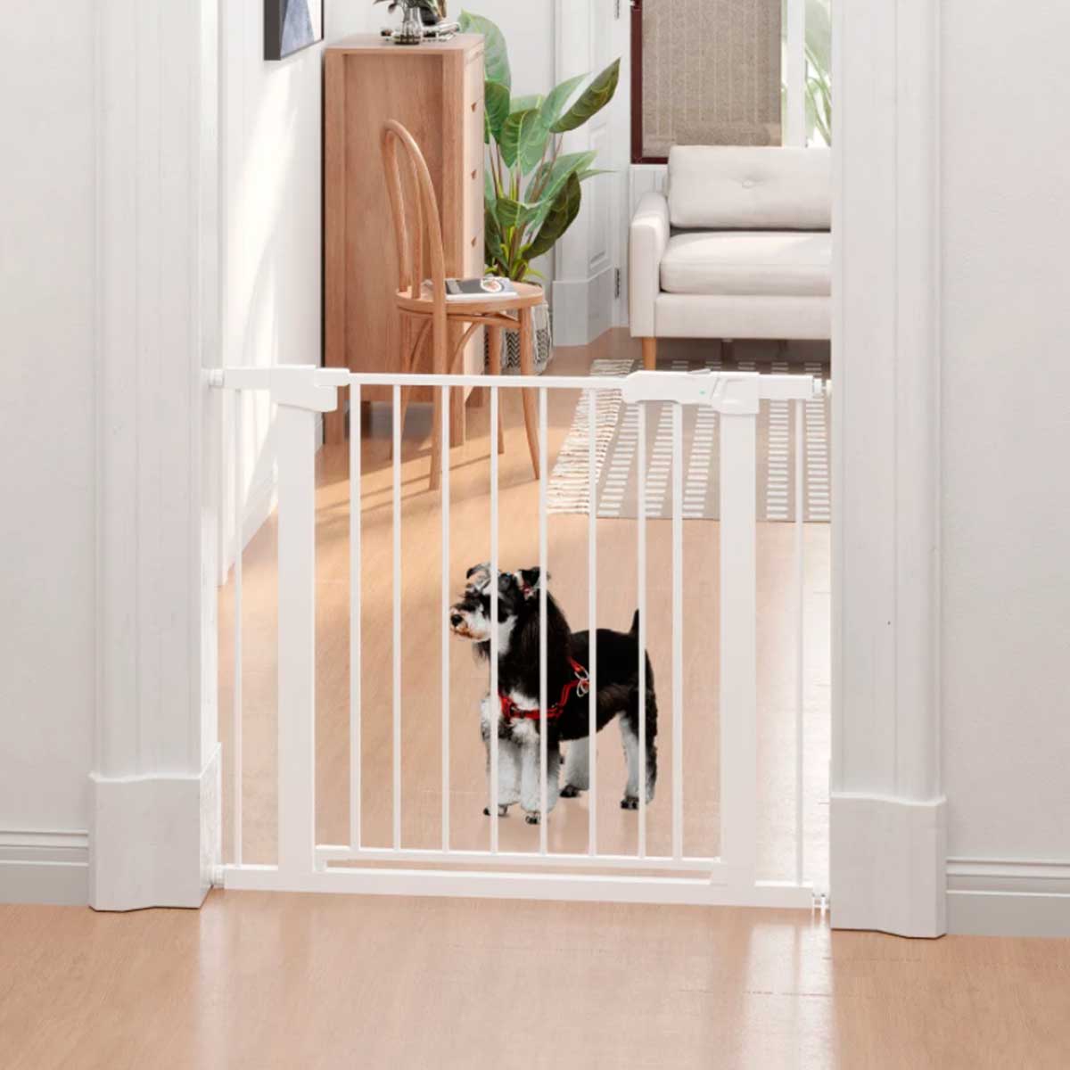 ¡La seguridad ante todo! Esta barrera de seguridad puedes orientarla para proteger a tu mascota o a tu bebé de posibles desniveles, o para que no entren en zonas de tu hogar en las que haya objetos peligrosos para ellos. Por ello, esta barrear de seguridad de PawHut es perfecta por su funcionalidad y versatilidad. Está fabricada con acero y PVC, con un ángulo de apertura inferior a 90º y ancho ajustable, apta para aberturas de 74 a 95 cm, de manera que se adaptará a las diferentes zonas en las que quieras instalarlo. Cuenta con un mecanismo de auto cierre y es de fácil apertura, podrás hacerlo hasta con una sóla mano. ¡Protege a tu mascota o bebé de las zonas más peligrosas con esta barrera de seguridad y a un precio de lo más bestial!