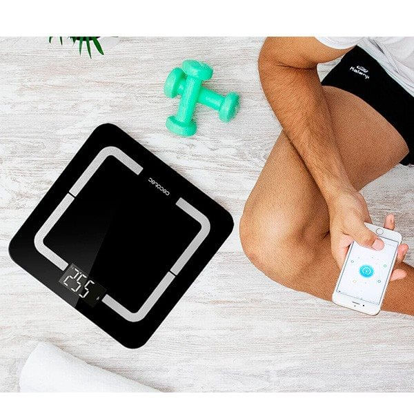 La báscula inteligente permite conectarse tanto con sistemas Android como IOS para llevar un control de valores de impedancia Bioeléctrica de forma personalizada, se puede hacer a través de aplicaciones compatibles. Se pueden controlar hasta 10 parámetros de hasta 8 usuarios registrados, lo que hará que sea más fácil llevar un control de la evolución del peso. Además, utilizando la tecnología UserCLever la báscula es capaz de identificar y reconocer si el usuario está registrado. El peso facilita una lectura de los valores muy sencilla gracias a la pantalla digital de colores invertidos y pantalla retroiluminada. Además, cuenta con una función para registrar pesos pequeños como el de los bebés o el de las mascotas. Incorpora 4 sensores de precisión que son capaces de detectar variaciones mínimas de 100 gramos, por lo que conocerás tu peso exacto. Además del peso corporal podrás hacer seguimiento de otros índices gracias a cinta métrica que incorpora. El peso funciona con una batería de 4 baterías AAA y cuenta con encendido y apagado automático por lo que se alagar la vida útil de las pilas. Se enciende al detectar peso y se apaga automáticamente a los pocos segundos de bajarse. El peso cuenta con agarre de poliuretano en las patas para que no se deslice durante su uso. Además, la superficie está fabricada en cristal templado de alta seguridad con electrodos