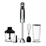 La batidora incluye un vaso de 800 ml de capacidad que te permitirá preparar todas tus recetas. Además, dispone de una tapa para proteger las elaboraciones y conservarlas en la nevera para volver a utilizarlas cuando las necesites. Con el accesorio batidor de varillas podrás montar claras de huevo, hacer salsas, preparar masas para postres. La picadora de 600 ml es el accesorio ideal para trocear en segundos y al máximo cualquier tipo de ingrediente ya sea: carne, queso duro, cebollas, hierbas, ajo, verduras, pan, galletas o nueces. Cuenta con una cuchilla especial para picar hielo. Para evitarte complicaciones después de preparar tus elaboraciones, puedes limpiar el pie de acero inoxidable y cada uno de los accesorios en el lavavajillas. Todo son facilidades para que el limpiar no te quite tiempo.