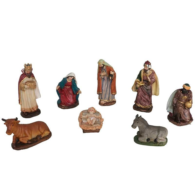 El espíritu de la Navidad se encuentra en los pequeños detalles, es por eso que para crear un ambiente acogedor, cálido y navideño en esta época la decoración es imprescindible. Podrás colocar este Belén de 8 piezas en cualquier estancia de tu hogar. Viene con 1 niño Jesús, 1 Virgen María, 1 San José, 3 Reyes Magos, 1 buey y 1 mula. Pintados a mano con todo lujo de detalles. Una decoración tradicional y clásica.