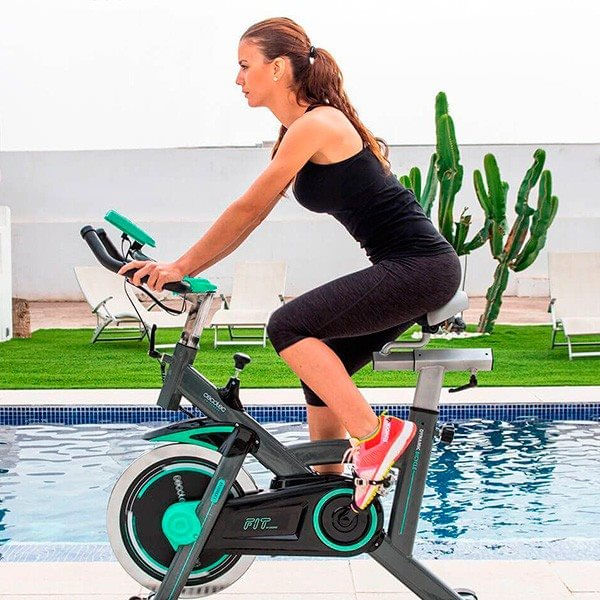 Para los deportistas que quieran seguir avanzando dentro del indoor, esta bicicleta de la marca Cecotec les resultará altamente efectiva. Cuenta con prestaciones de alta gama, con un volante de inercia de 20 kg y un sistema de pedaleo ágil y silencioso. El modelo Extreme 20 cuenta con un diseño exclusivo de gran robustez para, incluso, la práctica de ejercicio exigente. Tiene sillín acolchado y, al igual que el manillar, también es ajustable en altura. Dispone además de distintos niveles de resistencia que podrás ir ajustando según la dureza del entrenamiento que quieras practicar y un sistema de frenado de emergencia para detener su funcionamiento en cualquier momento. Esta bicicleta de uso profesional incluye también una microcomputadora LCD para mostrar en tiempo real el tiempo de ejercicio, la velocidad, las calorías consumidas, la distancia y el pulso. Con la función Scan que incorpora además también podrás ver de forma automática y rotativa tu cuadro de control personal cada 4 segundos. A pesar de su diseño y robusto es fácil de transportar y sus barras estabilizadoras aseguran su firmeza en cualquier superficie. Incluye además accesorios para sujetar tu Smartphone y una esterilla para proteger el suelo de tu casa.