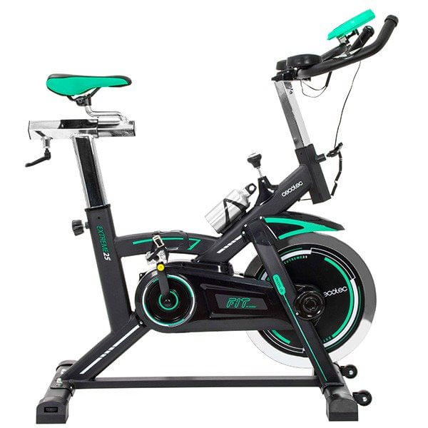 La bicicleta Extreme 25 es perfecta para aquellos deportistas que optan por un entrenamiento intensivo, eficiente y muy profesional. Cuenta con numerosas prestaciones de alta gama como un diseño ergonómico que simula a las bicicletas de carretera, volante de inercia de 25 kg, sistema de frenado de emergencia, manillar de triatlón con pulsómetro y sillín deportivo de máximo confort ajustable en altura y distancia. Además, es una bicicleta de gran robustez y permite un pedaleo silencioso, ágil y fluido.