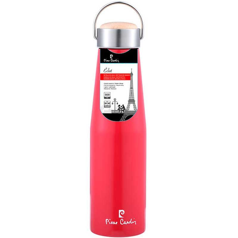 La botella de agua modelo Eclat de la marca Pierre Cardin está fabricada en acero inoxidable de color rojo. Se caracteriza por disponer de una capacidad de 800ml y por su resistencia a los golpes y rasguños. Es perfecta para evitar el uso de botellas de plástico ya que es muy fácil de limpiar y reutilizable. Llévala contigo a todas partes gracias a su ligero peso y disfruta de su diseño moderno e innovador con tapón en acabado madera con asa en color metal. Un accesorio ideal para el uso cotidiano y de una calidad espectacular.