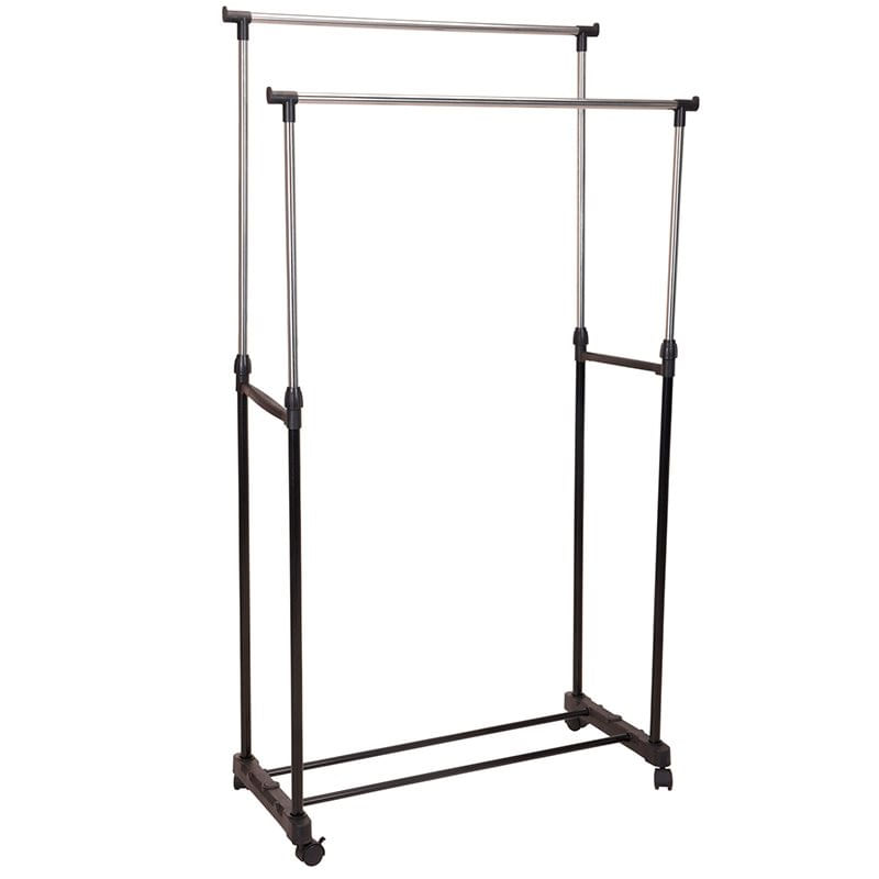 Este perchero con ruedas es ideal para tener siempre a mano las prendas de ropa y el calzado favorito de cada temporada. Incluye doble barra para colgar, por lo que te permitirá tener aún más espacio de almacenamiento. También es perfecto para colocarlo en la zona de lavandería de tu hogar o incluso en tu recibidor para organizar tus chaquetas y abrigos. Está fabricado con tubos de acero con refuerzos en ABS y viene con 4 ruedas que te permitirán moverlo de un lado a otro sin dificultad. La altura es totalmente regulable entre 90 y 160 cm, por lo que se adaptará a cualquier espacio. Además, soporta un peso máximo de 10kg y su estructura es muy estable.