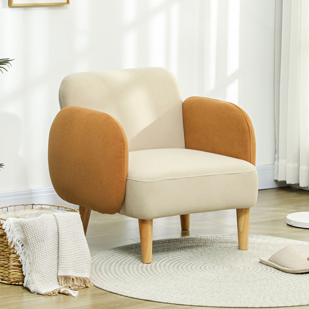 Si buscas darle un toque moderno y acogedor a tu casa, la butaca modelo Club de Homcom es justo lo que necesitas. Esta butaca, con su diseño bicolor en crema y ocre, combina estilo y comodidad a la perfección. Tapizada en un tejido de terciopelo súper suave, no solo luce elegante, sino que también resulta muy agradable al tacto. El asiento está diseñado pensando en tu confort, con resortes en ‘’S’’ y bandas elásticas que ofrecen un apoyo firme pero cómodo, mientras que el acolchado de espuma de alta densidad te invita a sentarte y relajarte durante horas. Además, sus patas de madera de caucho le dan estabilidad y un toque natural que queda bien en cualquier rincón.