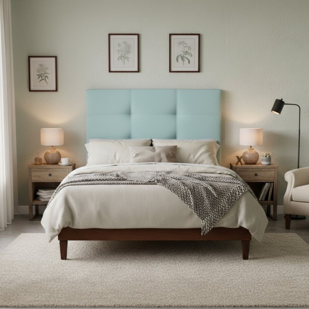 El cabecero Naia de 150 cm destaca por su diseño de capitoné, elegante y atemporal, ideal para añadir un toque de estilo y confort a tu dormitorio. Su estructura de MDF le aporta solidez y durabilidad, mientras que el acolchado con fibra de 300g proporciona una superficie mullida y agradable al tacto, perfecta para disfrutar de momentos de relax, leer o ver la televisión cómodamente. Tapizado en tejido Thais, un material suave, resistente y fácil de mantener, este cabecero combina funcionalidad y estética en una sola pieza. Su diseño sencillo pero con carácter se adapta fácilmente a cualquier tipo de decoración, desde los ambientes más clásicos hasta los más modernos. Si buscas renovar tu dormitorio con una pieza elegante, práctica y cómoda, el cabecero Naia es una opción que no falla.