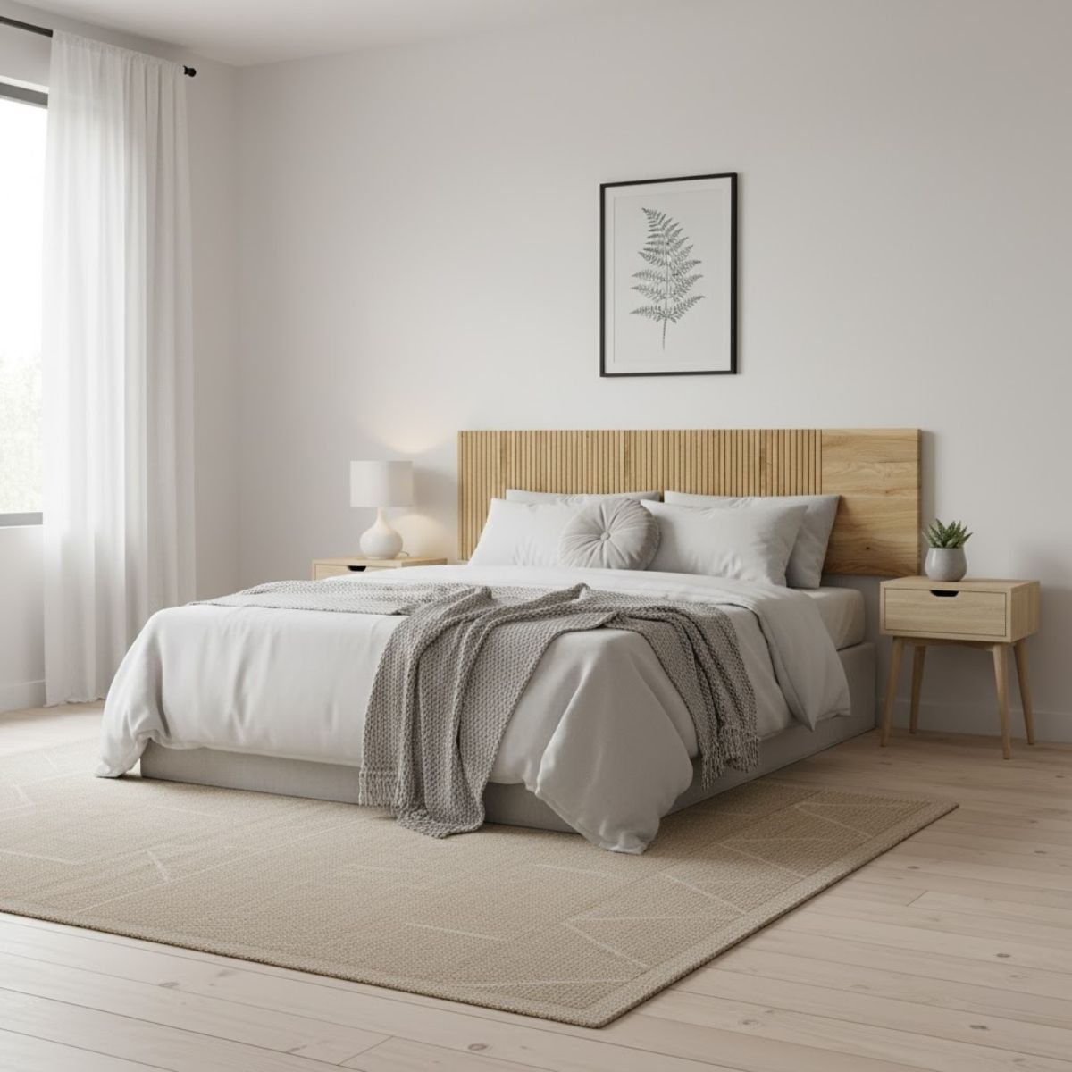 Decora tu cama con el encantador cabecero modelo Solana, una pieza que no solo embellece tu dormitorio, sino que también añade confort y personalidad a tu espacio. Este cabecero se convierte en el centro de atención de la habitación gracias a su diseño de listones, que aporta dinamismo, frescura y un toque natural muy acogedor. Además de ser un elemento decorativo, el Solana resulta práctico, ya que te ofrece un apoyo cómodo para leer, ver una serie o relajarte antes de dormir.