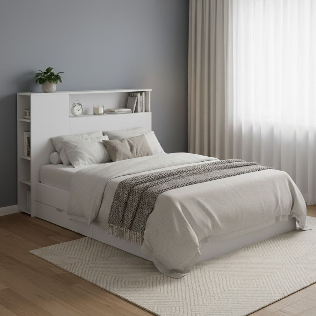 Gracias a su diseño funcional, podrás prescindir de mesitas de noche, lo que ayuda a optimizar el espacio disponible y mantener la habitación ordenada y despejada. Además, su estructura práctica se integra con facilidad en cualquier estilo de dormitorio. El cabecero Ten combina utilidad y simplicidad, convirtiéndose en un elemento que organiza, facilita el día a día y aprovecha cada centímetro de tu habitación de manera inteligente.