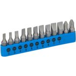 - 10 puntas de tornillo de cabeza plana: 3 mm, 4 mm, 5 mm, 6 mm, 7 mm (todas 2x)