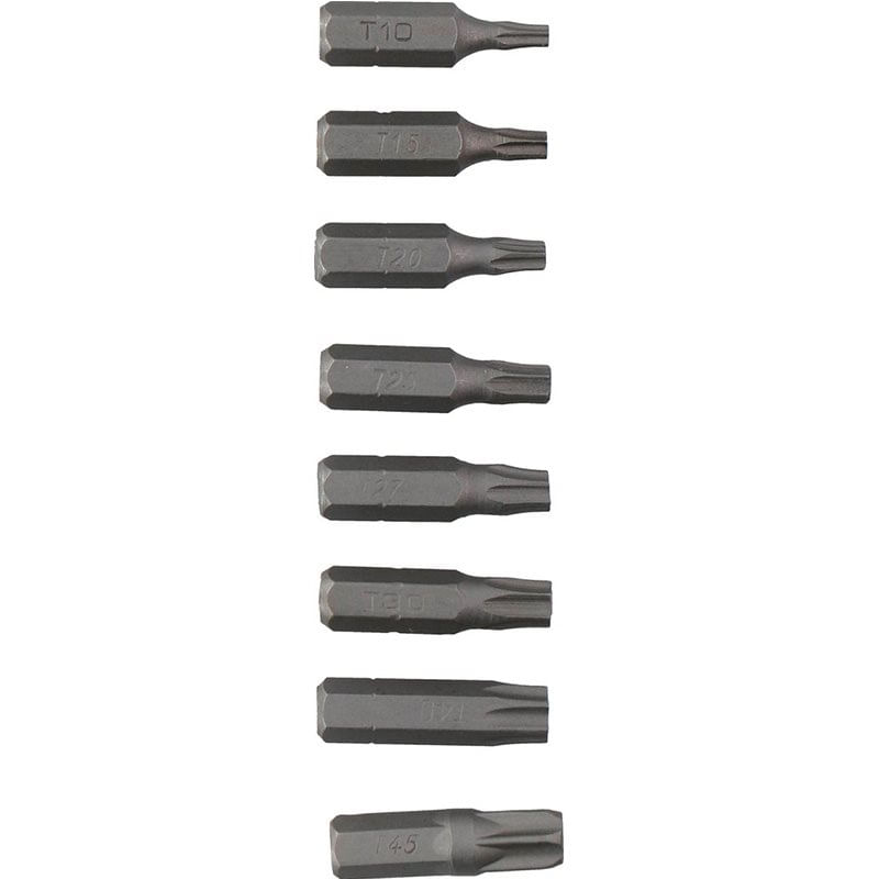 - 8 puntas Torx de 25 mm: T10, T15, T20, T25, T27, T30, T40, T45