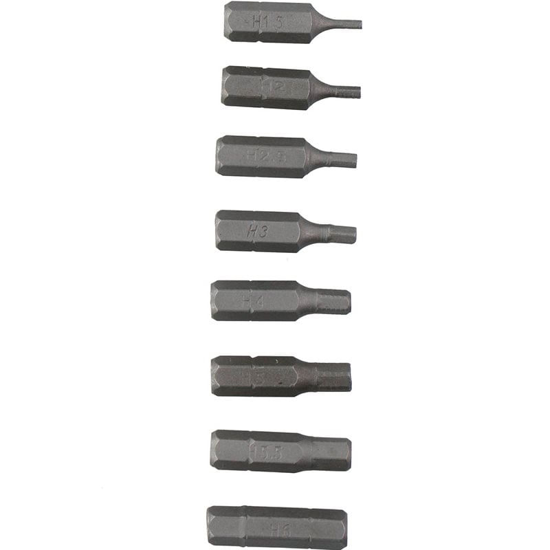 - 8 puntas de 25 mm Llaves hexagonales / hexagonales: 1,5, 2, 2,5, 3, 4, 5, 5,5, 6