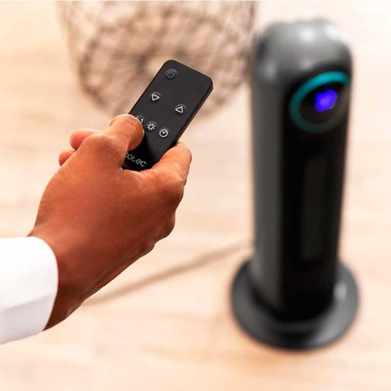 El calefactor cerámico modelo Ready Warm 10150 Top Ceramic de la marca Cecotec cuenta con una potencia de 2200W, mando a distancia y pantalla LED para que su control sea cómodo y sencillo. Gracias a su doble termostato regulable podrás ajustar el nivel de potencia y la temperatura según las necesidades que tengas en cada circunstancia. Además, también podrás ajustar de forma precisa la temperatura. Cuenta con 3 modos de funcionamiento (eco, turbo y ventilador) y cuenta con temporizador de hasta 8 horas que podrás seleccionar desde nuestra pantalla LED. Es perfecto para calentar rápidamente estancias de hasta 22m² y oscila a 45º. No resultará nada molesto durante su funcionamiento ya que su nivel sonoro es de tan solo 30dB. Es muy seguro y cuenta con sensor antivuelco y protección contra sobrecalentamiento. Además, es muy fácil de trasportar de una estancia a otra gracias a su peso ligero.