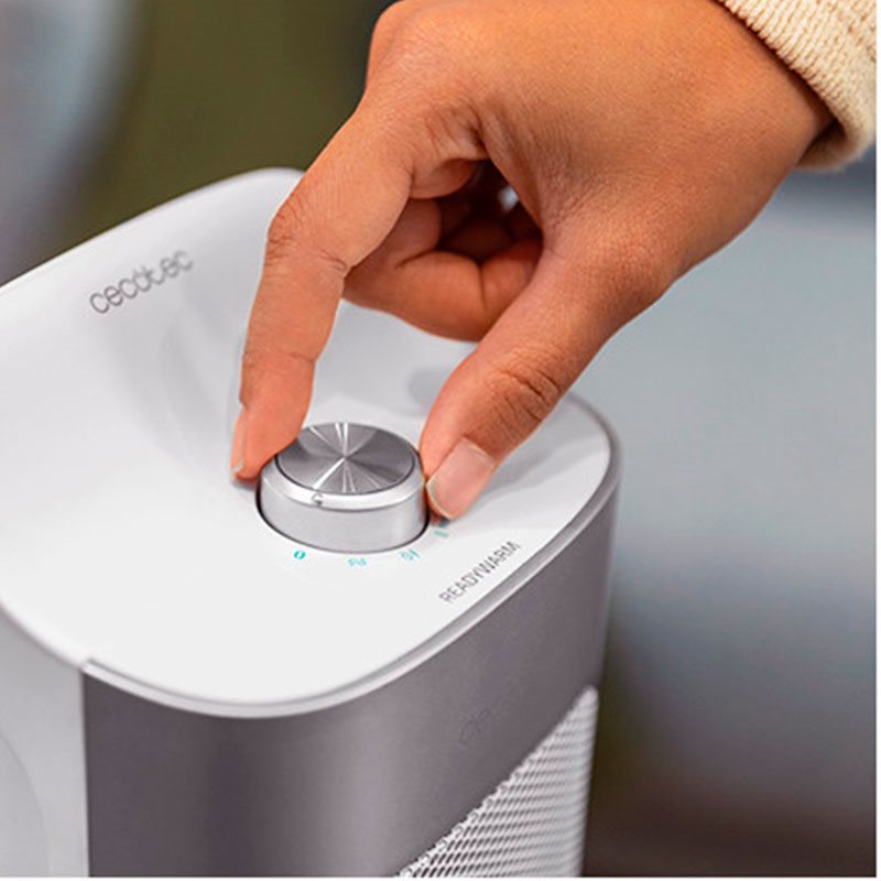 El calefactor cerámico de pie modelo Ready Warm 6700 Ceramic Sky de la marca Cecotec cuenta con una potencia máxima de 2000W que permite calentar estancias de hasta 20m² por lo que es ideal para comedores, salones, dormitorios, etc. Es capaz de oscilar a 45º que, junto con sus 50 cm de altura, le permite repartir de manera más homogénea el calor por toda la estancia en la cual sea ubicado. Su termostato es regulable y viene con 3 modos de funcionamiento. Gracias a su motor DC, su funcionamiento es totalmente silencioso con tan solo 30dB a máxima potencia. Su uso sencillo con 1 ruedecilla permite al usuario seleccionar de manera intuitiva la potencia y el modo de funcionamiento.