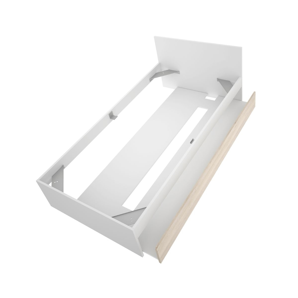 Transforma la habitación de tu adolescente en su oasis personal con la cama Top. Este innovador modelo combina estilo contemporáneo con funcionalidad inteligente para optimizar el espacio en habitaciones compactas. La cama Top presenta un diseño moderno y práctico que la convierte en una elección ideal para maximizar el espacio disponible. Su característica más destacada es el práctico arrastre en la parte inferior, que añade funcionalidad adicional al permitir el almacenamiento de una segunda cama ocasional o cajas de gran tamaño, garantizando así una óptima organización en la habitación. Con un elegante acabado en blanco y un frontal de roble natural, esta cama se integra armoniosamente en cualquier estilo de decoración, mientras que su estructura robusta asegura durabilidad a largo plazo. Los tacos ABS quitarruidos y antirrayaduras ofrecen una experiencia de uso silenciosa y protegen los suelos de posibles daños.