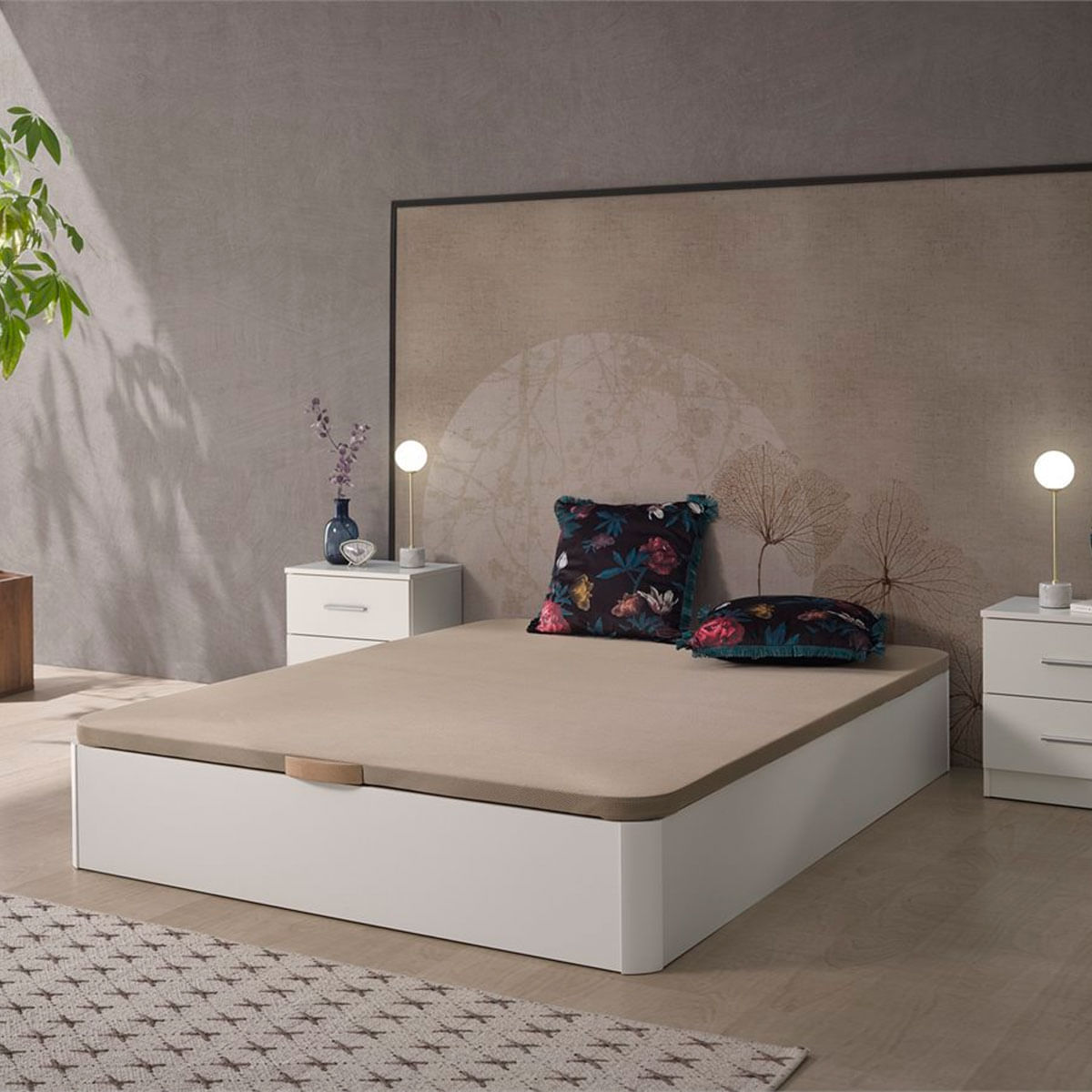 El canapé Gaia combina practicidad y estilo para darle un aire renovado a tu dormitorio a la vez que ganas en espacio de almacenaje. Fabricado con materiales de alta calidad, incluyendo un tablero de aglomerado de 8 mm y tablas de melamina de 22 mm, la durabilidad y resistencia está más que garantizadas. Sus patas de madera maciza y cantos de PVC añaden un toque de elegancia y robustez. La base tapizada en 3D proporciona ventilación y soporte para tu colchón, mientras que el sistema de elevación hidráulico permite un acceso fácil y sin esfuerzo al amplio espacio de almacenaje interior. El tirador ergonómico de madera y el arquillo metálico aseguran un manejo cómodo y seguro. Con un diseño estético y combinable, el canapé Gaia se adapta a cualquier estilo de decoración. Su interior resistente con acabado textil protege tus pertenencias mientras que el apoyo total al suelo garantiza estabilidad y evita la entrada de polvo. Montarlo es fácil gracias a las instrucciones incluidas, y su superficie lisa y los materiales de calidad hacen que sea fácil de limpiar. ¡Todo ventajas! ¡Disfruta de un dormitorio ordenado y con estilo gracias al canapé Gaia!