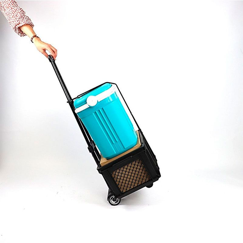 Con esta carretilla de mano podrás realizar de forma más sencilla mudanzas, mover objetos pesados de un lado a otro, ir a la compra, transportar las neveras del coche a la playa, etc. Cuenta con una robusta estructura y el peso máximo de carga que soporta es de 40kg. Después de su uso guardarla será muy sencillo ya que es plegable. Viene en forma de L con 4 resistentes ruedas y cuenta con una banda elástica con un gancho adjunto a la carretilla para asegurar los objetos que transportes.