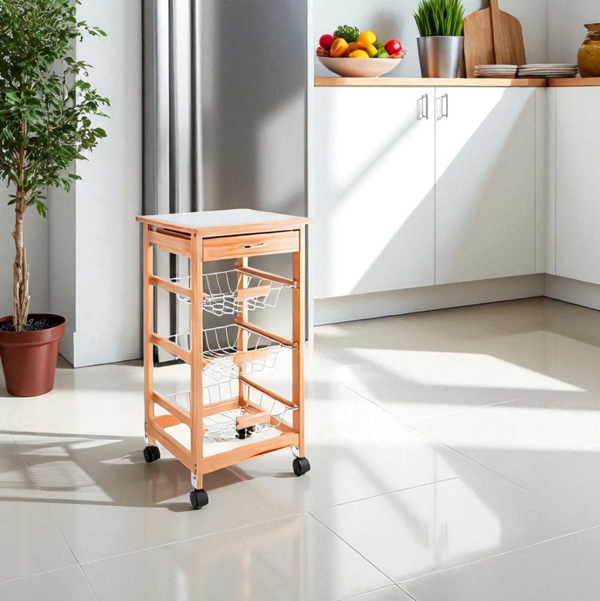 Si buscas un sitio donde guardar tus cosas, el carrito auxiliar modelo Garbo es una opción muy práctica. Consta de tres cestas espaciosas y un cajón, ideales para tenerlo todo a mano. Las cestas, que incluyen asas, se pueden extraer con facilidad, lo que permite acceder cómodamente a su contenido en cualquier momento. Además, incorpora cuatro ruedas que facilitan su desplazamiento por la estancia, para que puedas moverlo sin esfuerzo según lo necesites. Lo más destacable de este carrito es su versatilidad: puedes usarlo como mueble para la despensa, para el baño o en cualquier otro rincón donde necesites un extra de organización.