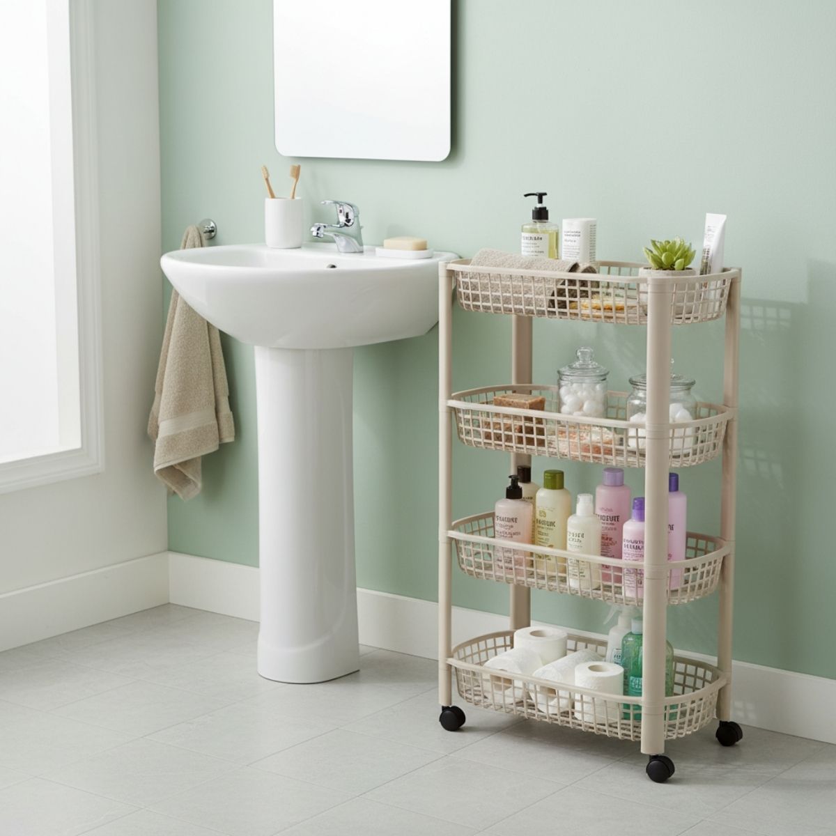 Si necesitas espacio adicional, ya sea en tu cocina o baño, este carrito auxiliar es ideal para ampliar el espacio de almacenamiento y poder tener todo lo que necesitas al alcance de la mano. Este carrito está formado por 4 amplias cestas y 4 ruedas por lo que podrás trasladarlo y moverlo por la estancia según necesites. Podrás guardar gran cantidad de objetos, desde alimentos hasta productos de limpieza, belleza o de higiene. Fabricado en materiales de alta calidad, soportará la humedad del baño o el calor de tu cocina permitiéndote utilizar este fabuloso carrito donde y cuando quieras. Hazte con el tuyo y dale la función que necesites.