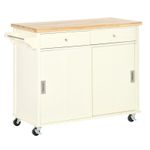 Este carrito auxiliar de cocina de la marca Homcom se caracteriza por contar con un gran espacio de almacenaje donde podrás almacenar todo tipo de utensilios, accesorios y alimentos. Está compuesto por 1 armario con puertas correderas, 2 cajones y barra para colgar. El armario cuenta con una balda interior ajustable en altura. La barra lateral, además de servir para colgar los paños de cocina, se puede usar como manillar de empuje para llevar el carrito de una sala a otra. Viene con 4 ruedas giratorias que son ideales para moverlo de un lado a otro. Soporta un peso máximo de 50kg, por lo que es muy resistente.