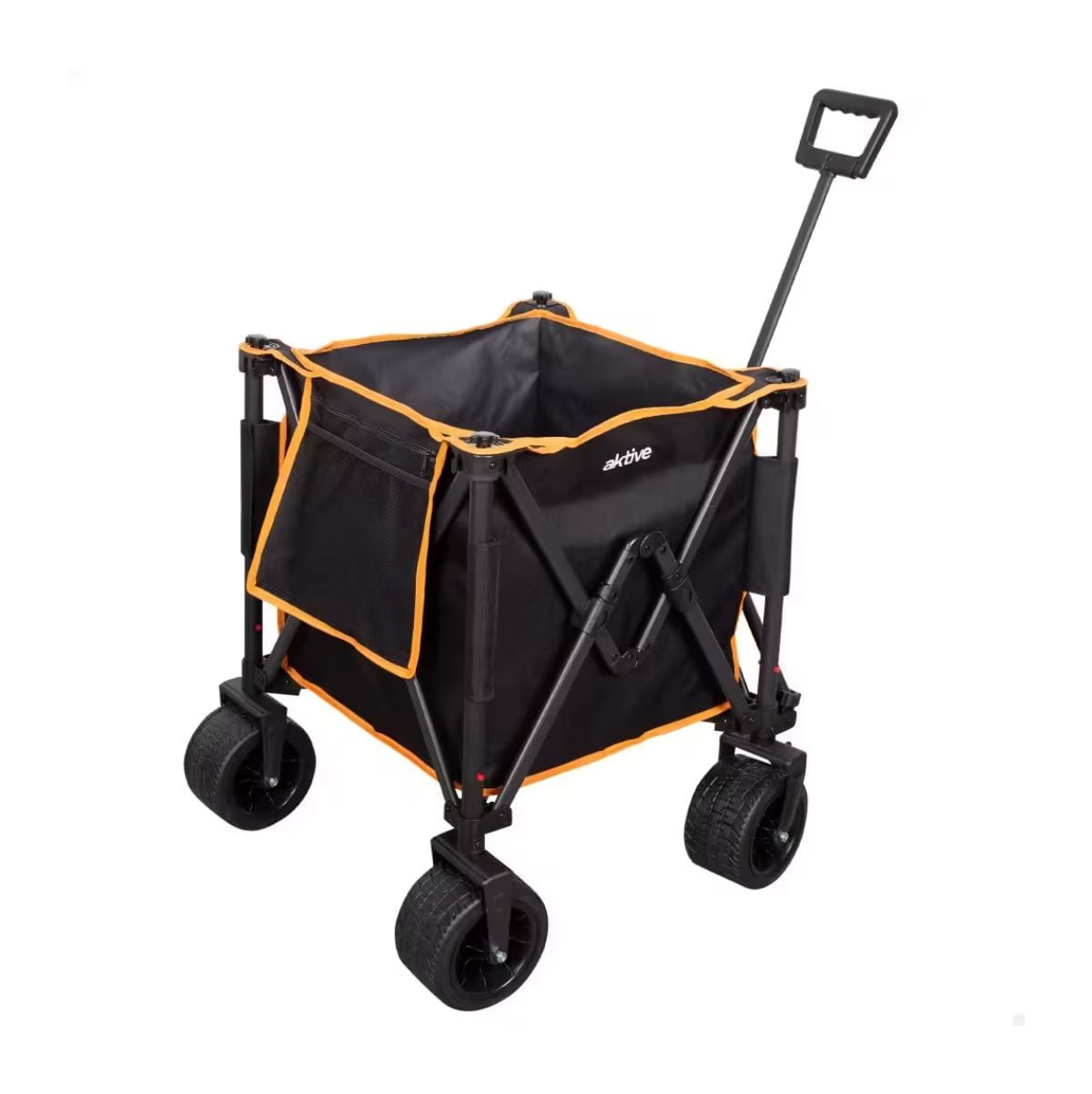 Con unas dimensiones compactas, este carro se adapta a diferentes necesidades, ofreciendo espacio suficiente para transportar sillas, sombrillas, neveras portátiles y más. Cuando no lo necesites, su diseño plegable permite guardarlo de manera compacta en casa, en el coche o en cualquier lugar sin ocupar demasiado espacio. El carro de playa Aktive es la solución ideal para hacer tus días al aire libre más cómodos y sin preocupaciones. Olvídate de cargar peso y disfruta al máximo cada aventura con este práctico y funcional carro de transporte. ¡Hazte con el tuyo y lleva la comodidad contigo a la playa, el camping o cualquier excursión!