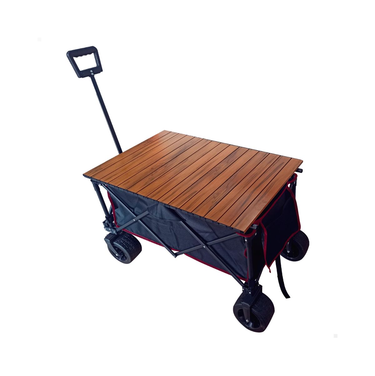 Lleva todo lo que necesites para tus aventuras al aire libre sin complicaciones con este carro de transporte 2 en 1, que además se convierte en una práctica mesa desmontable. Perfecto para cargar sillas, sombrillas, neveras y cualquier objeto pesado sin esfuerzo, convirtiéndose en el aliado ideal para la playa, picnics o escapadas al campo. Su estructura de acero resistente y su tejido de poliéster extraíble y lavable garantizan una larga vida útil y fácil mantenimiento. Cuenta con un amplio compartimento con un bolsillo adicional para guardar pequeños accesorios y soporta hasta 100 kg de carga, ofreciendo espacio de sobra para todo tu equipo. El diseño está pensado para que el transporte sea lo más cómodo posible.
