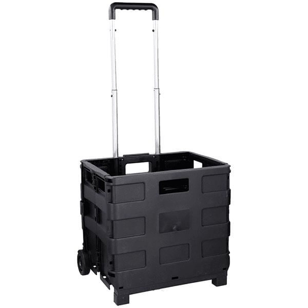 Práctico carro multiusos para que puedas transportar con facilidad cualquier tipo de objetos. Además, es plegable, por lo que a penas ocupará espacio cuando quieras guardarlo. Con el podrás realizar la compra, transportar tus herramientas de un lado a otro o hasta para llevar los juguetes de los niños. Tiene una capacidad total de 45 litros. La cesta esta fabricada en plástico resistente y aluminio, por lo que soporta hasta pesos mayores. También puedes usarla como sistema de almacenaje. - Dimensiones totales: 38x33x85cm - Dimensiones cesta: 38x33x36cm - Material: plástico / aluminio. - Color: negro - Ruedas: 2x goma dura - Capacidad: 45L