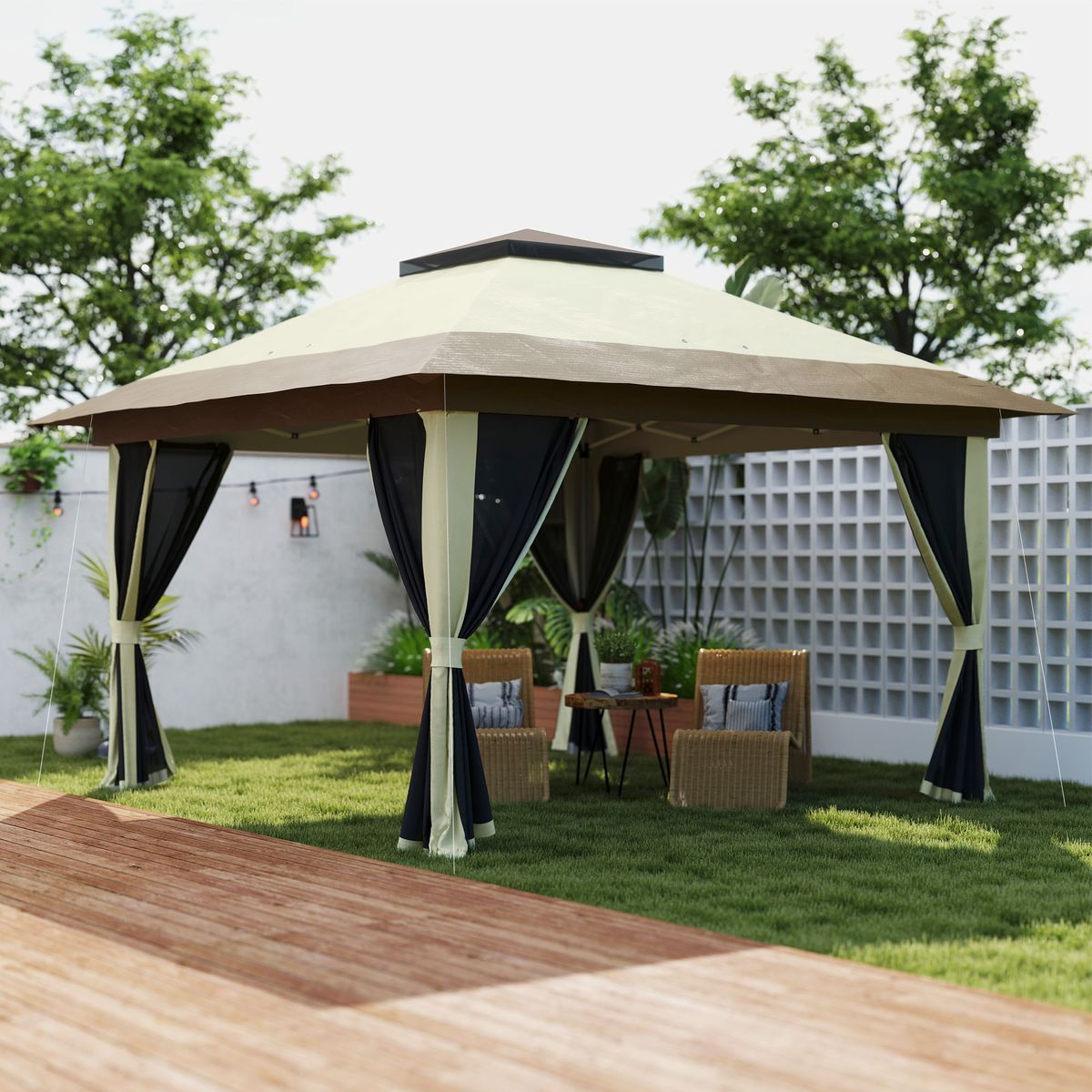 Convierte cualquier espacio exterior en una zona cómoda y protegida con el cenador Dhile pop-up de Outsunny. Ya sea para una comida familiar en el jardín, una reunión con amigos o para usarlo en eventos al aire libre como mercadillos, este cenador es una opción práctica y versátil. Gracias a su sistema de apertura pop-up, puedes montarlo y desmontarlo en solo unos segundos, sin complicaciones. Además, viene con una bolsa con ruedas para que transportarlo sea mucho más sencillo.