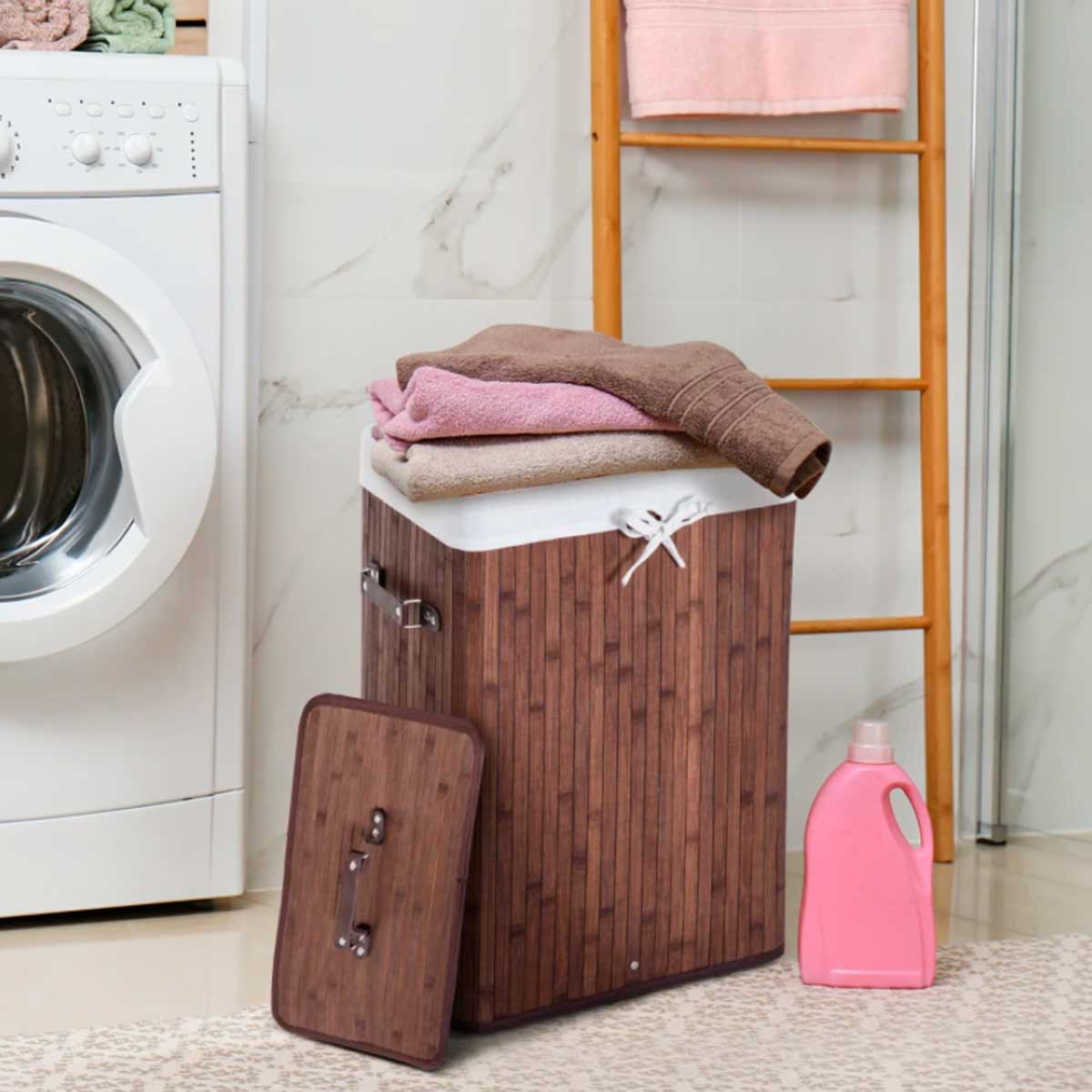 Contar con un cesto para depositar la ropa sucia al final del día es la mejor opción para tenerla toda recogida para poner una lavadora cuando esté llena, la cual puedas transportar fácilmente llegado el momento. Este cesto de Homcom está hecho con bambú y PU, mientras que su bolsa interior es de tela, la cual se puede sacar y lavar también fácilmente. Dispone de una capacidad de 70L, y orificios en la parte inferior para una mejor ventilación. Cuenta con tapa y 3 asas, 1 en la tapa y 2 en los extremos del cesto. Es plegable, portátil y muy práctico, podrás colocarlo en el baño, en el balcón, cuarto de la lavadora, o donde más lo necesites. ¡No lo pienses más y consigue tu cesto ya a un precio de chollo!