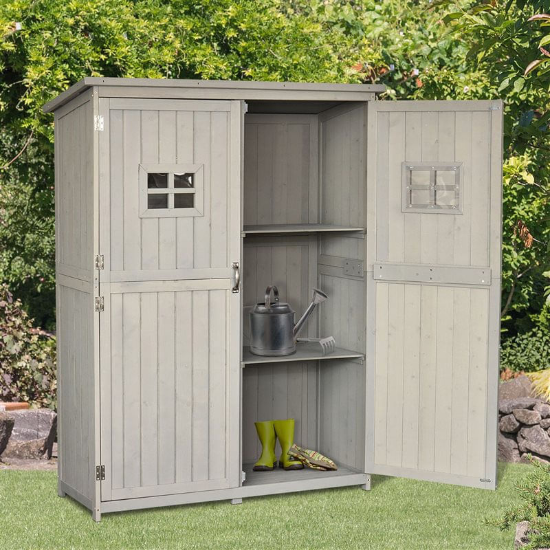 ¿Ya no sabes dónde guardar todas tus herramientas y utensilios de jardinería? Este fantástico cobertizo de jardín de Outsunny te permitirá tener todas tus cosas ordenadas y bien organizadas. Está construida con madera de pino natural sin tratamiento, por lo que se recomienda aplicar un barniz o capa protectora para prolongar su vida útil. También cuenta con techo asfáltico y madera de pino previamente aceitada que garantizan un sellado perfecto y una mayor resistencia a las inclemencias del tiempo. Está formado por 2 ventanas y 2 puertas dobles con tiradores metálicos y cierre magnético para facilitar su apertura y cierre. En su interior tiene 2 zonas de almacenaje: en la parte izquierda cuenta con 3 con baldas para herramientas pequeñas y la derecha sin baldas para herramientas de mango largo. Dispone de una base elevada con 4 patas de madera para evitar el contacto directo al suelo, previniendo así de la humedad. Es fácil de montar e instalar, será la solución perfecta para tener todas tus artículos de jardín y herramientas seguras.