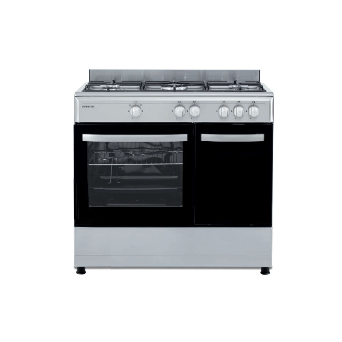 Disfruta de la cocina de siempre con la potencia del gas y un diseño profesional con esta cocina de gas con horno Infinition CC9162XPB. Con 5 fuegos, incluyendo un potente quemador Wok de 3500W, te ofrece la versatilidad que necesitas para cocinar desde un guiso lento hasta un salteado rápido. Además, incluye quemadores rápido (2900W), semirrápido (1700W) y auxiliar (950W), todos con sistema de seguridad FFSD y termopar para que cocines con total tranquilidad. La encimera esmaltada en inox es resistente, fácil de limpiar y viene con parrilla esmaltada y mandos inox de alta calidad que aportan un toque elegante y duradero.