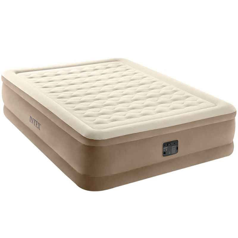 El colchón hinchable de 2 plazas modelo Dura-Beam Deluxe de la marca Intex está fabricado con PVC resistente con acabado de tacto suave, superficie de doble capa y construcción acanalada similar a los colchones tradicionales, anti-ácaros. Te sentirás como en casa cuando vayas de acampada, o también puedes usarlo como cama auxiliar para cuando tengas invitados. Cuenta con la tecnología exclusiva Fiber-Tech y la garantía de calidad Air Lock, que aseguran que se mantenga firme, estable y que sea 100% hermético. Las esquinas son redondeadas para facilitar la colocación de sábanas y lleva incorporado un hinchador eléctrico de 220-240V con diseño renovado, válvula 2 en 1 y cajetín para ocultar el cable eléctrico.