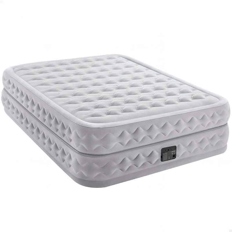 El colchón hinchable modelo Supreme Air-Flow de la marca Intex es apto para 2 personas y soporta un peso máximo de 273kg. Su altura es de 51 cm y su doble borde permite colocar sábanas fácilmente. Cuenta con Fiber-Tech en su interior: finas fibras de poliéster que no se deforman y mantienen el colchón firme y estable como el primer día. Su superficie y sus bordes acanalados vienen en forma de rombo para mayor confort y su tacto es suave y aterciopelado. Además, cuenta con hinchador eléctrico integrado de 220-240V con diseño renovado y válvula 2 en 1 de inflado y desinflado automático.