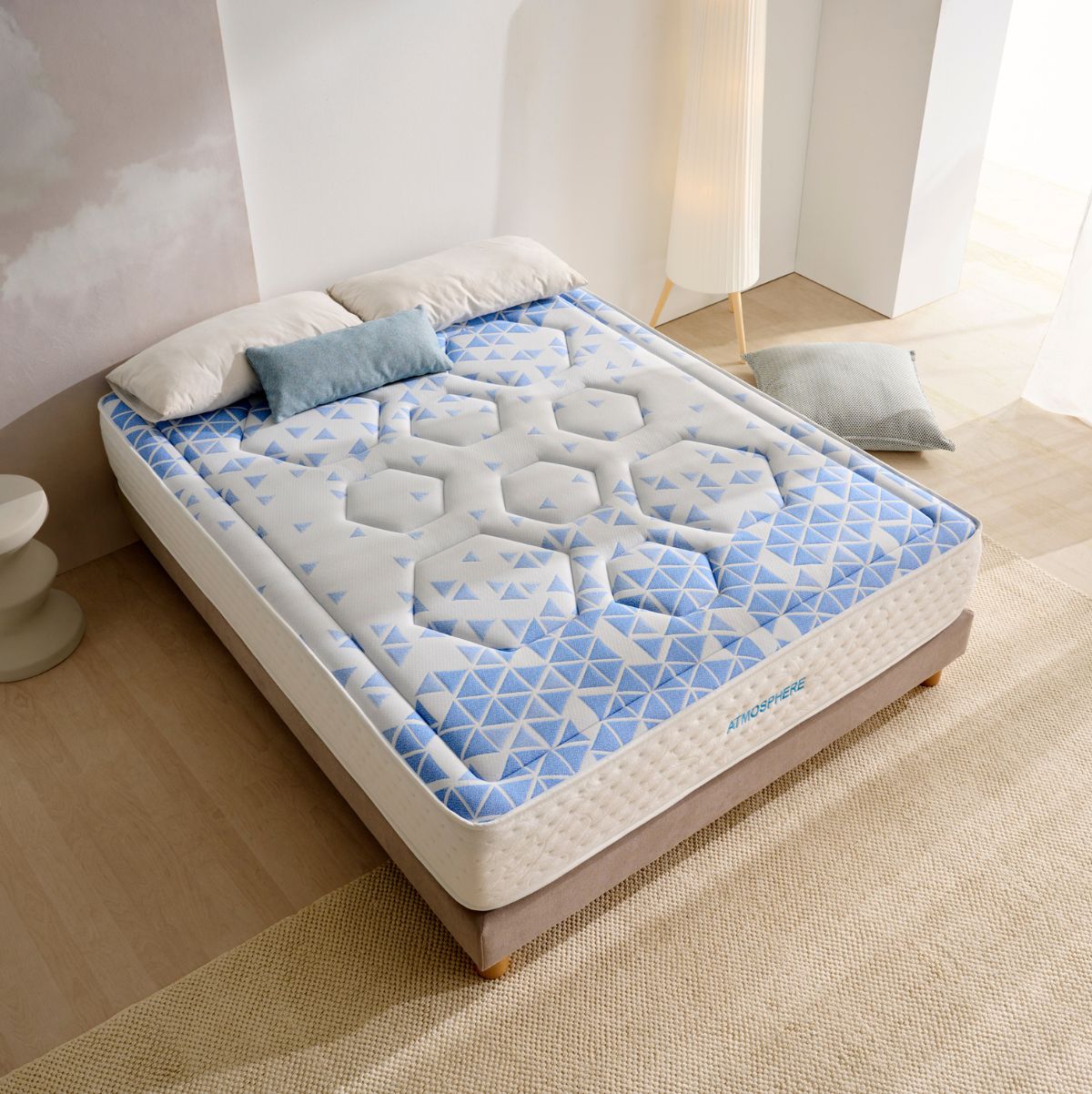 Descubre el descanso de alta calidad que tu cuerpo y tu mente necesitan con el colchón viscoelástico Luxury Atmosphere, diseñado exclusivamente para quienes buscan una experiencia superior al dormir. Este colchón de gama alta combina tecnología avanzada con materiales de primera calidad para garantizar una adaptación precisa y un confort duradero. Con una altura de 30 cm, una firmeza media-alta y un núcleo de espuma HR de alta densidad, ofrece una excelente resistencia al uso y se adapta de forma ergonómica a los contornos del cuerpo. Su cara superior está confeccionada con un tejido Stretch Premium que aporta elasticidad, suavidad y una notable resistencia al desgaste. El acolchado, cuidadosamente diseñado, incluye una capa de viscoelástica con grafeno Plus que ayuda a disipar el calor y se amolda al cuerpo con gran precisión, una capa supersuave que aporta una sensación mullida y envolvente, y una capa de fibra hipoalergénica que favorece la ventilación y mantiene una temperatura adecuada durante el descanso.